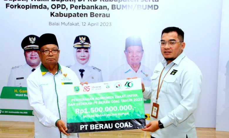 Kalimantantv.com – PT Berau Coal terus konsisten menunjukkan komitmen untuk mendukung pemerintah kabupaten Berau. PT Berau Coal telah menyerahkan Komitmen Zakat, Infak, dan Sedekah (ZIS) kepada Badan Amil Zakat Nasional (Baznas) Kabupaten Berau sebesar Rp1,5 Miliar, serta penyerahan dan pelaporan Zakat penghasilan karyawan PT Berau Coal periode Maret 2022-April 2023 sebesar lebih dari Rp 894 juta di Balai Mufakat, Rabu (12/4).
